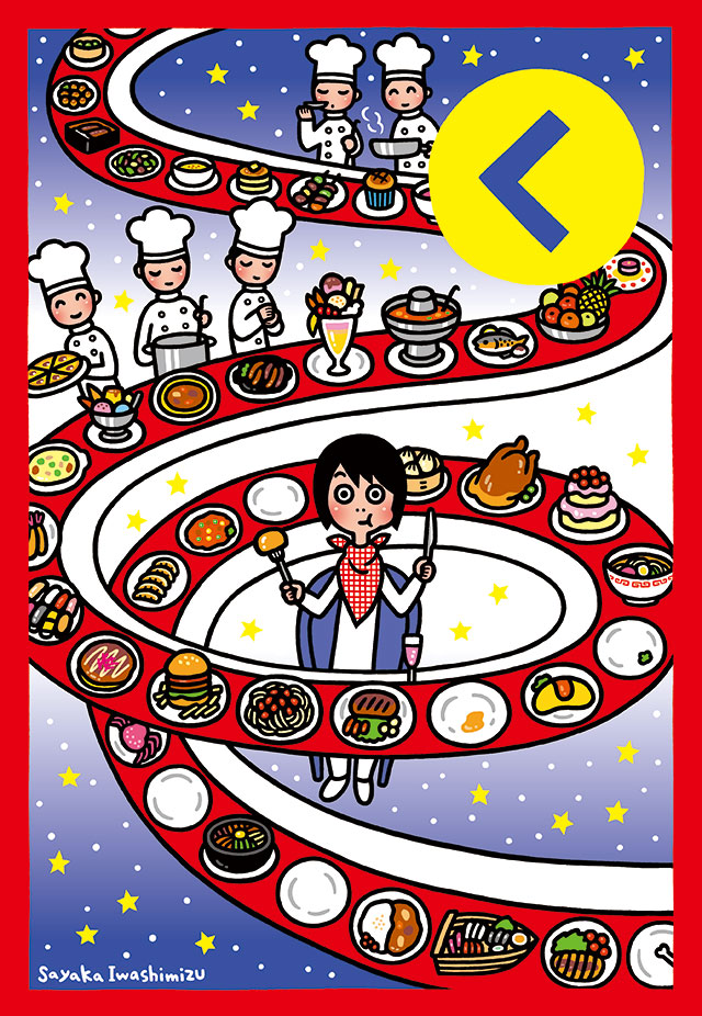 オリジナル|original illustrations くいしんぼうの初夢 回転レストラン